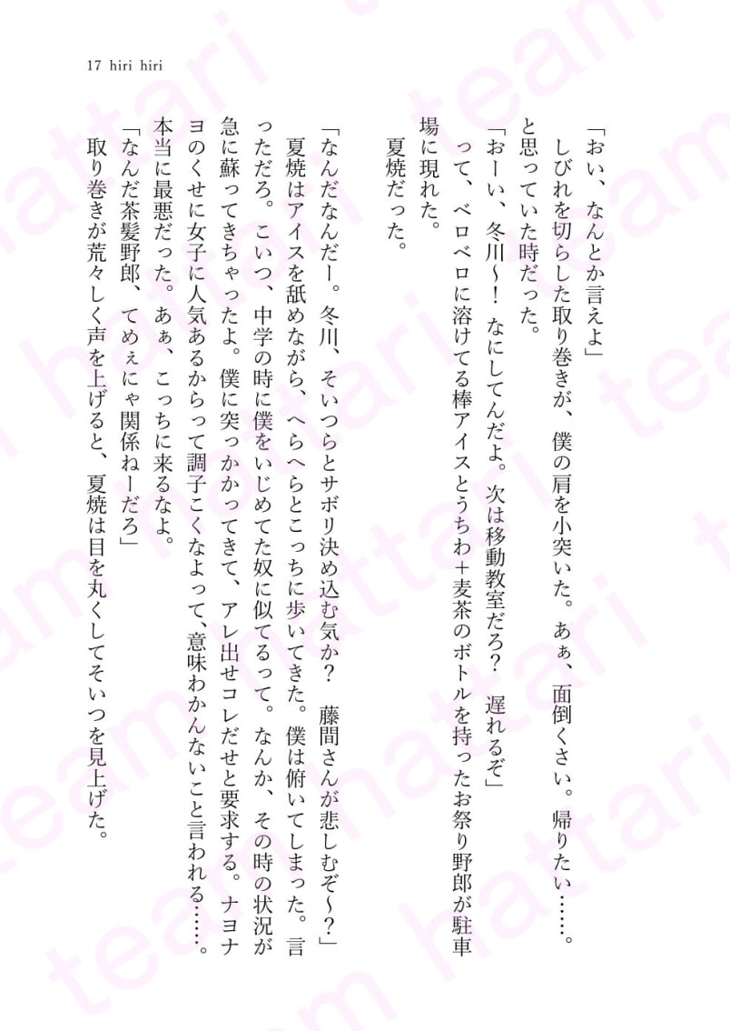 札幌を舞台に繰り広げられるteam hattari 初の青春BLストーリー。タイトルは作者の好きなスープカレー店hirihiriから。